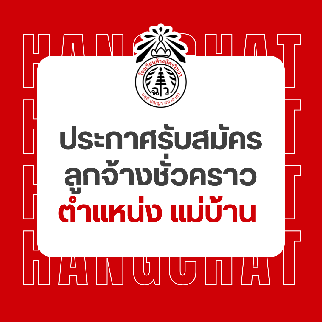 ประกาศโรงเรียนห้างฉัตรวิทยา เรื่อง รับสมัครสอบคัดเลือกบุคคลเพื่อจ้างเป็นลูกจ้างชั่วคราว ตำแหน่ง แม่บ้าน